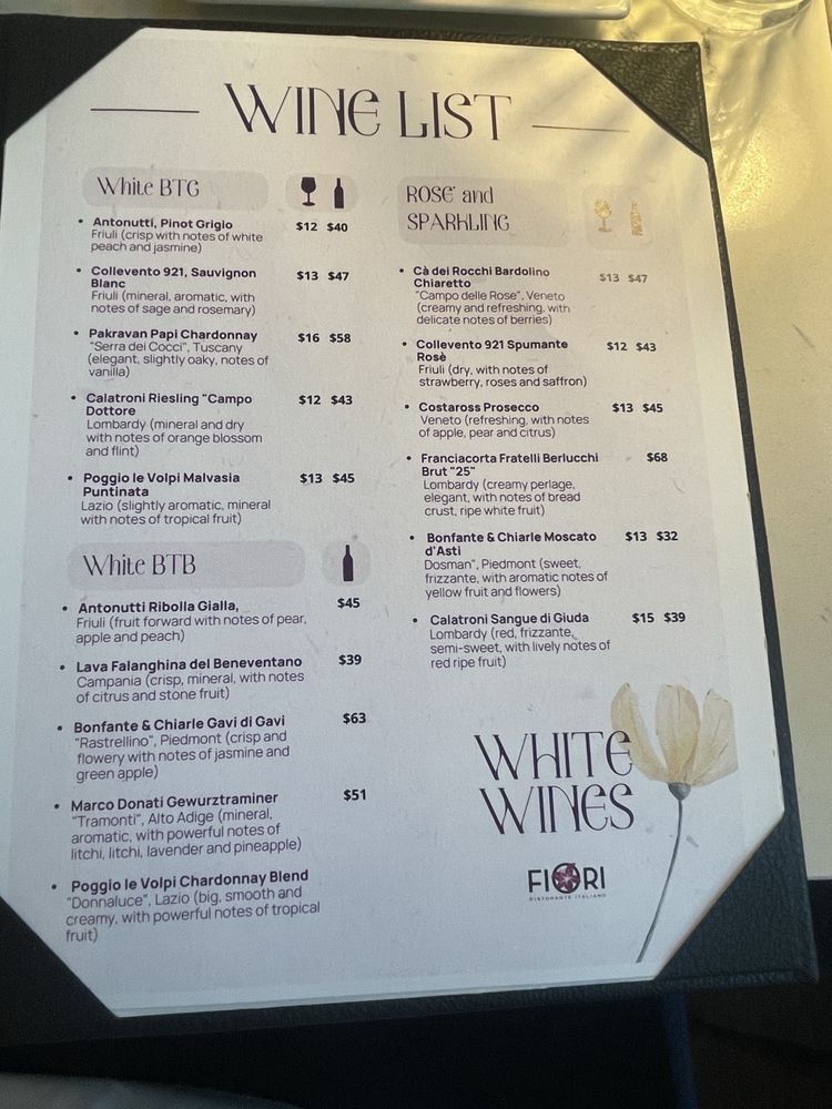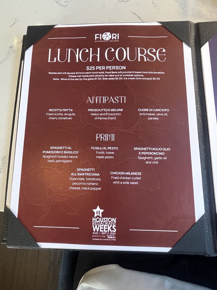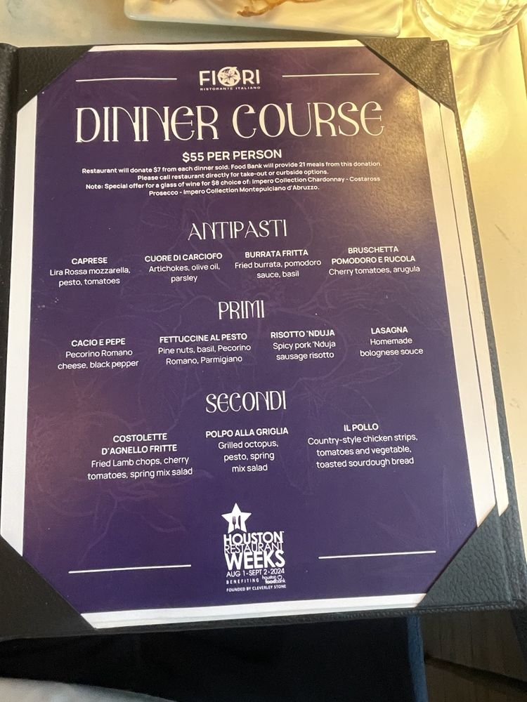 Fiori is a charming Italian venue in Houston, TX, offering a cozy and romantic dining experience. The restaurant features a clean and comfortable cottage chic decor, with inviting lighting and large picture windows creating a warm ambiance. The menu includes a variety of dishes, such as the flavorful crostini appetizer and zesty Amatriciana pasta. While some highlights like the ribeye may fall short in texture, the overall dining experience at Fiori is enjoyable. Customers appreciate the stellar service, cute interior with plants, and the opportunity to try a diverse range of dishes for an affordable price during special events. With a focus on authentic flavors and attentive staff like Veronica, Fiori is a must-try for those seeking a memorable Italian dining experience in Houston.